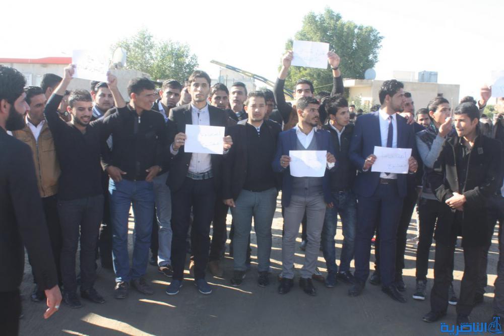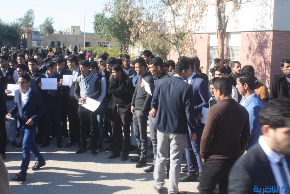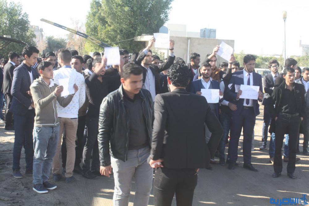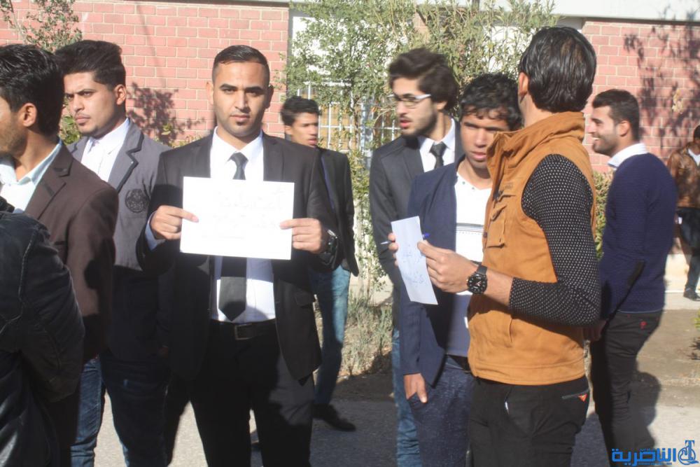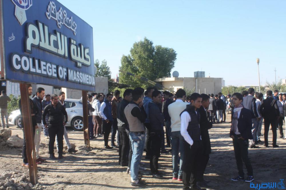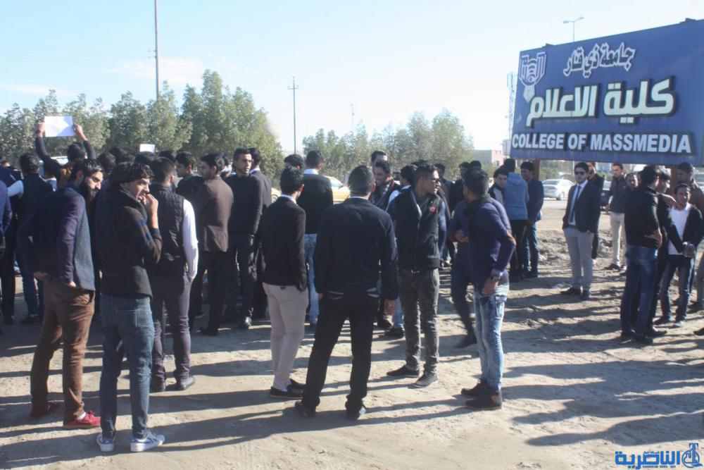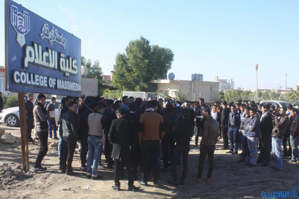 طلبة كلية الاعلام في ذي قار يعتصمون احتجاجا على قرار الجامعة باعفاء العميد