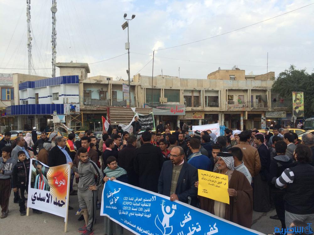 بالصور : متظاهرو الناصرية يجددون مطالبتهم بالاصلاح الحكومي بعد مرور عام