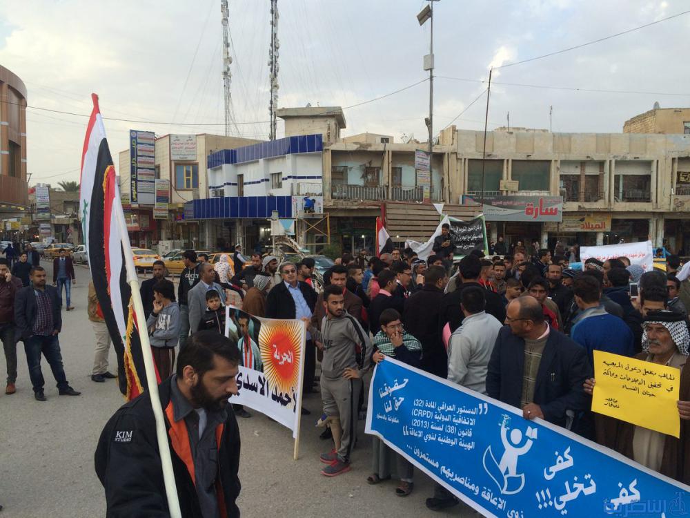 تظاهر العشرات من ابناء محافظة ذي قار ، اليوم الجمعة ، في شارع الحبوبي وسط الناصرية ، رافعين شعارات تطالب بتلبية دعوة المرجعية للاصلاح بعد مرور عام ومحاسبة المفسدين