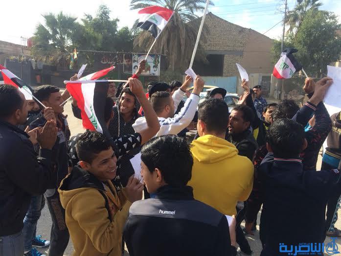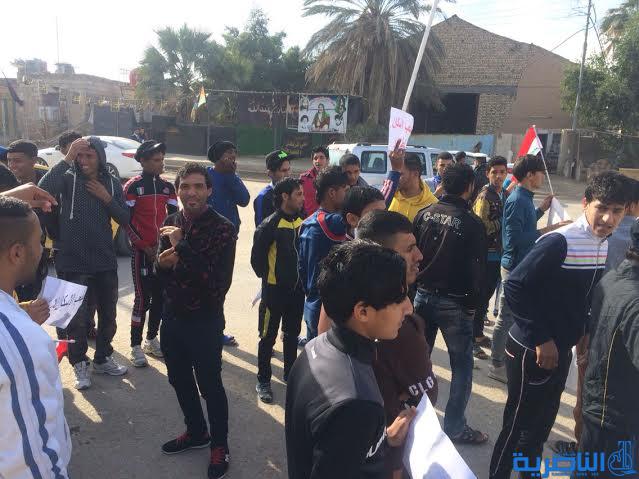 بالصور : رياضيون يتظاهرون في الناصرية ويهتفون ( الملاعب خط احمر )