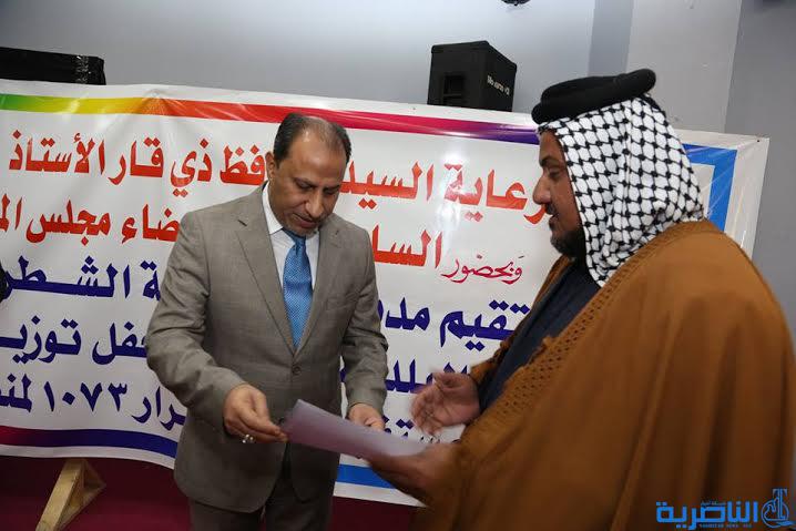 محافظ ذي قار يوزع 1500 سند تمليك بالشطرة ويفتتح بناية البلدية بعد تأهيلها بالإمكانيات الذاتية